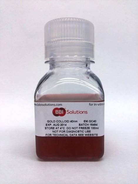 市場で広く使用されている英国BBI Solutions社製の金コロイドです。